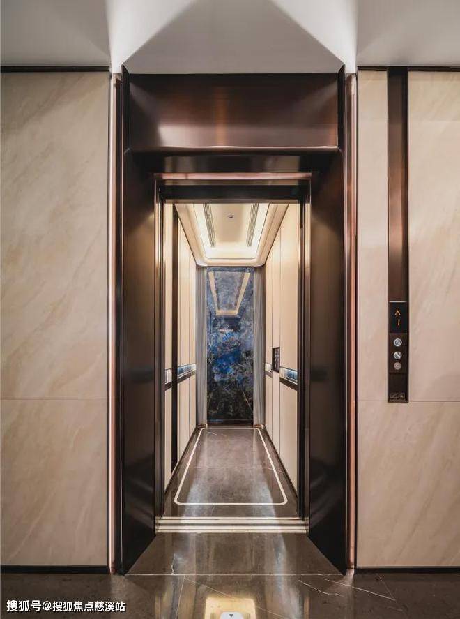电梯厅的设计同样不凡,古铜色不锈钢金属电梯门搭配仿皮革木板铺面,以及蓝翡翠岩板的点缀,让整个空间充满了东方的瑰丽之美。精致的私家铭牌采用壁灯设计,蓝翡翠岩板背景的拼接更是将奢华感提升到了一个新的高度,让人仿佛置身于星级酒店的顶奢套房之中。