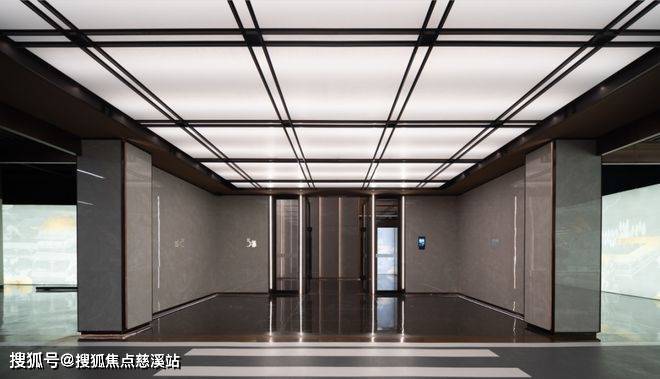 建发缦云的负一层大堂同样不失精致,约4米的挑高设计带来了一份别致的雅致感。