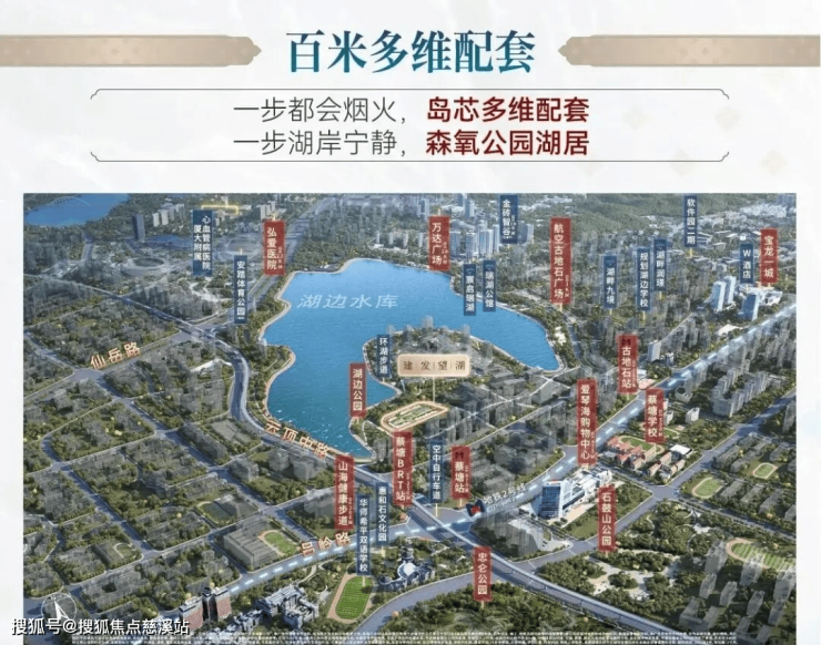 项目位居湖边水库南岸湖心半岛,南敞北靠的格局,宁静舒适,距离湖岸仅约136米,穿过公园就是湖,约200米厦门山海健康步道入口,周边配套商场地铁都在惬意的步行范围内。