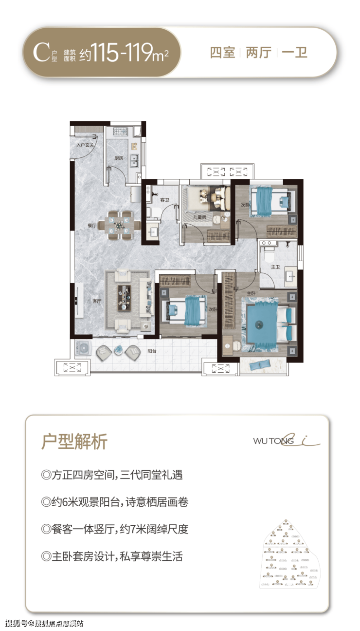 ◎户型方正 ◎南北通透 ◎高拓展空间 ◎阅景大阳台 ◎三面宽朝南 ◎2梯4户/3梯6户