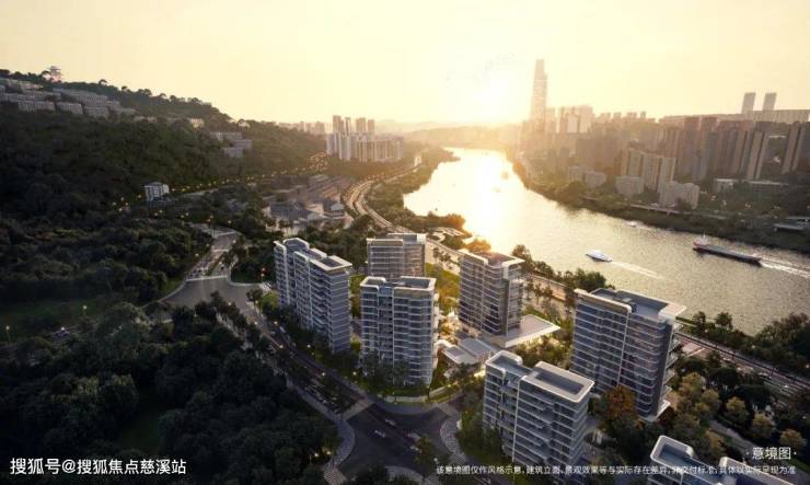 戴着270°湾流曲线式顶冠+宽面玻璃的超四代建筑,将眼前的嘉陵江湾和背后的森林公园融合,像极了一座“漂浮在江岸上的山林”...
