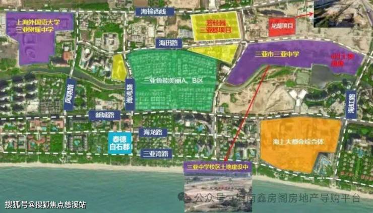 距项目约2公里,海南自由贸易港建设项目(第四批),三亚首个集幼儿园、小学、初中、高中为一体的十五年一贯制寄宿制学校。学校建成后可达204个班级,可容纳接近9000名学生。