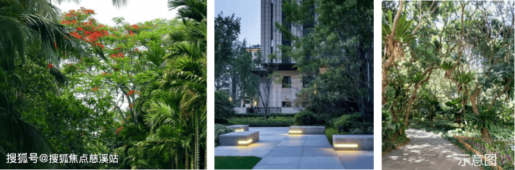 以热带园林点缀归家动线,并形成开阔的公共活动场域,为邻里活动提供高质量社交空间;