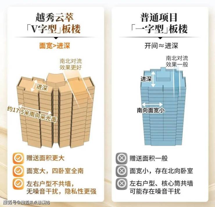 云萃的独创的「V字型」板楼,真正做到了开间>进深。有什么好处呢?