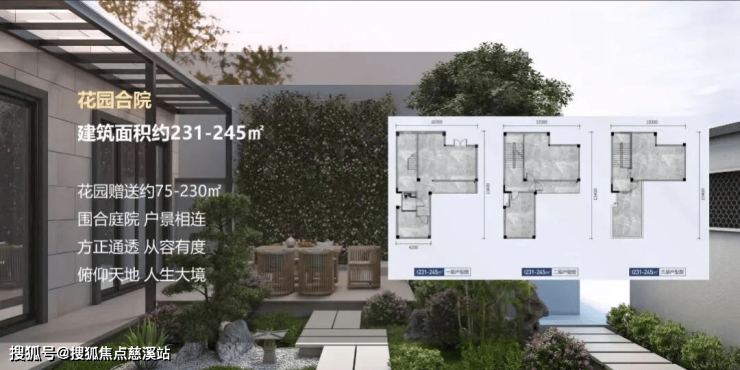 产品户型:建面约276㎡企业级大平层、建面约231-245㎡花园式企业合院