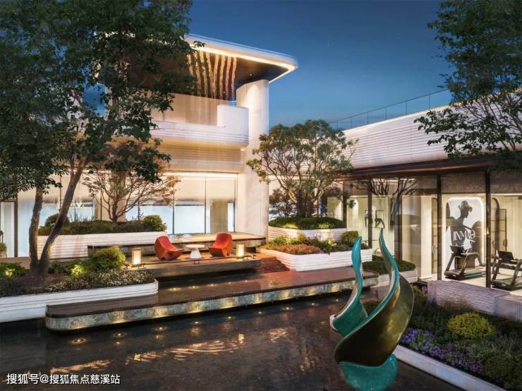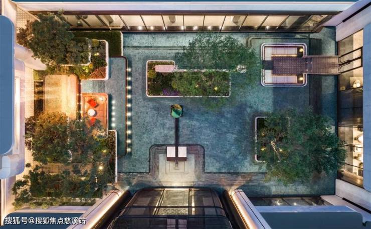 •最高8米台地立体园林,600㎡下沉水庭满铺亚马逊绿奢石(华北首例),融入莫奈、梵高等艺术元素,形成“漂浮森态岛屿”