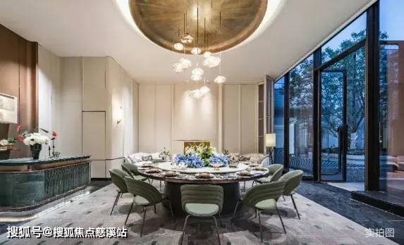 •立面采用斯卡帕叠级美学与海派艺术风格,入口大门以贝金米黄石材与亚马逊绿奢石打造,下沉庭院通铺同款奢石,强化艺术调性