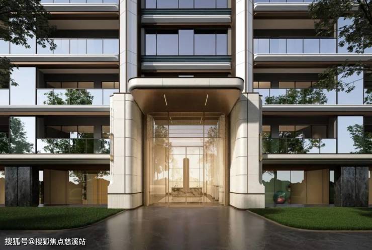 约216米长的海派艺术商街,以及汲取华尔道夫酒店理念打造的超级归家界面。社区主入口宽66米、高9米,贝金米黄石材与普拉达绿奢石拼接,复刻艺术经典的厚重感;