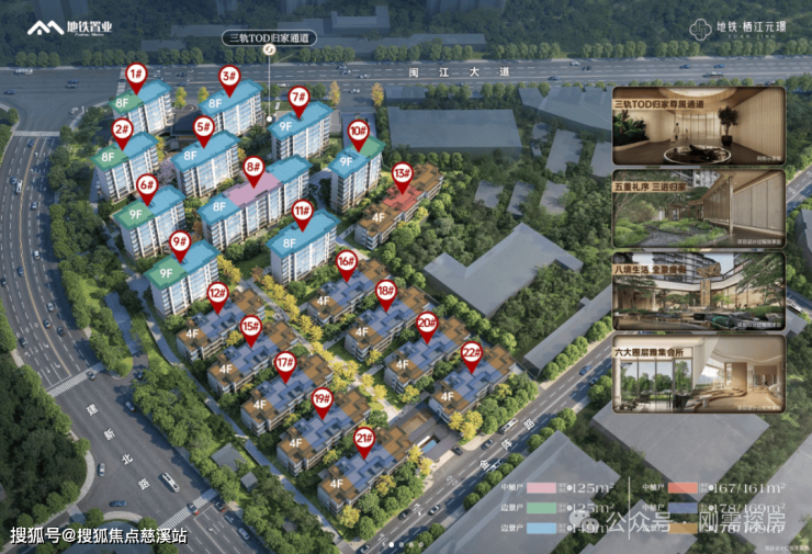项目占地50亩,共规划20栋住宅,其中10栋为8-9F洋房(125-149平),10栋为4F上下叠墅(161-178平),254套。