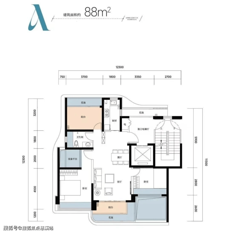 🏠A户型: 约88㎡三房两厅两卫