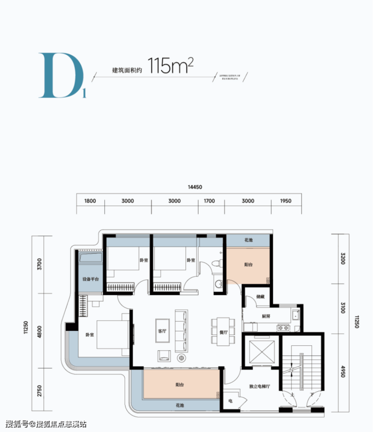 🏠D1户型:约115㎡四房两厅两卫