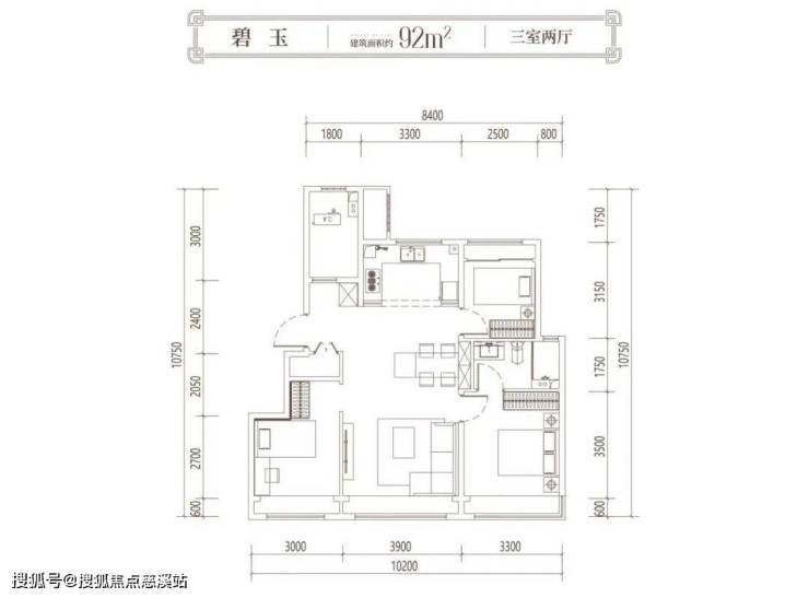 很多极端洋房小三室能做到82㎡,但珺璟和煦起步就是92㎡。没有极致压缩面积与总价,整个起步户型追求方正够用。