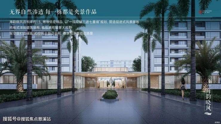 海韵晓风定位为“创新度假洋房”,容积率约1.5,距离沙滩约700米,融合无界自然与迈阿密风格精装,打造松弛感滨海生活。
