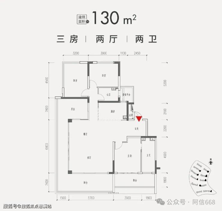 3、130平米三房两卫