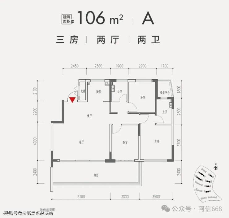 1、106平米三房两卫 A户型