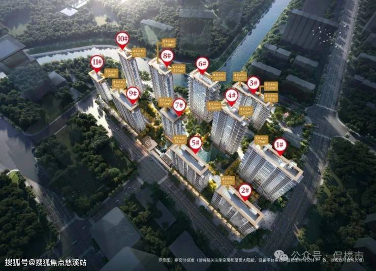 项目规划11栋住宅,其中5栋21-25F高层,6栋15-17F小高层,共614套,户均面积173㎡,绿建奖励+阳台+设备平台+架空层等地上不计容面积9602㎡,相当于每户增加15.6㎡的面积,每户平均得房率提升约9% 。中间核心的位置4#、6#、8#规划四代宅。