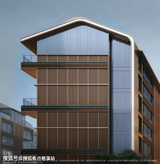 约150米的超长城市界面,悬山冠顶屋顶、普拉达墨绿奢石+金甲铝板的“金镶玉”立面、北龙湖首个陶板山墙。