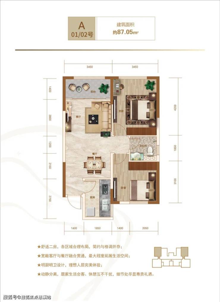 户型面积:约82.87-117.36㎡两房/三房