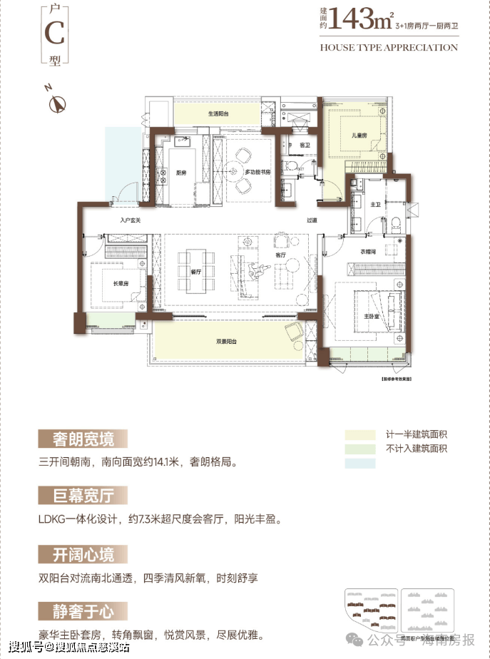 建筑面积:约143㎡