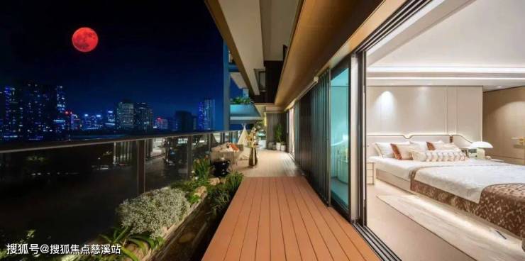 夜晚,主卧套房与露台相连的设计,让您躺在床上也能欣赏星空。