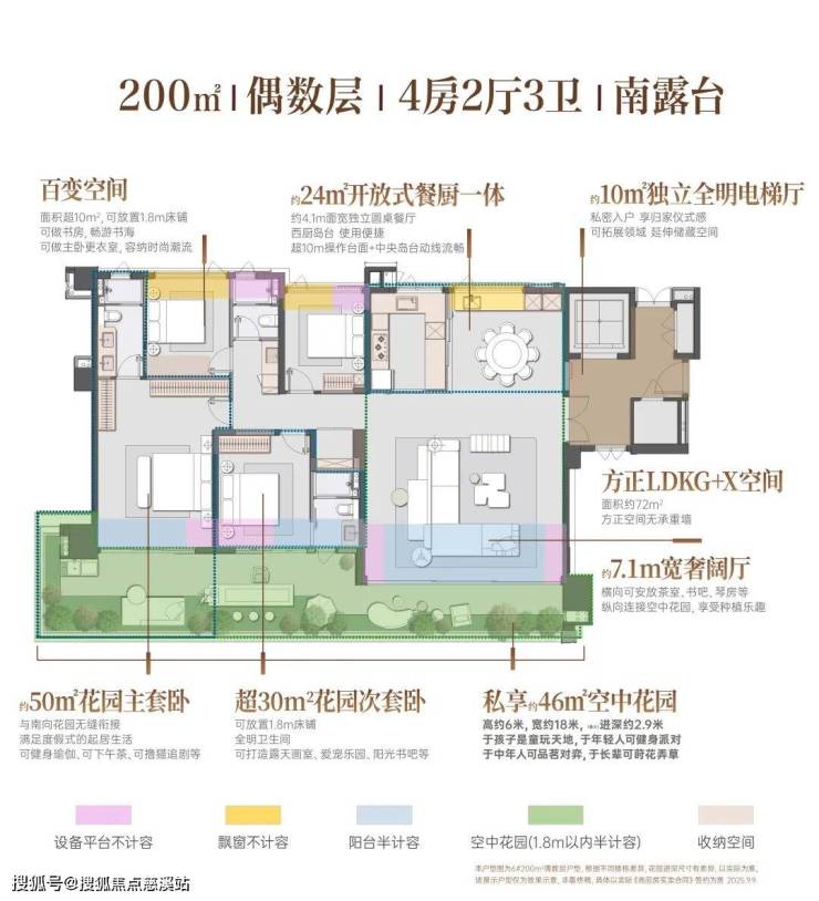 传统大平层虽能提供观景阳台,但功能单一,多沦为晾晒空间。而灏云的空中庭院却能打造出一个可种植、可社交、可瑜伽的立体生活场域。