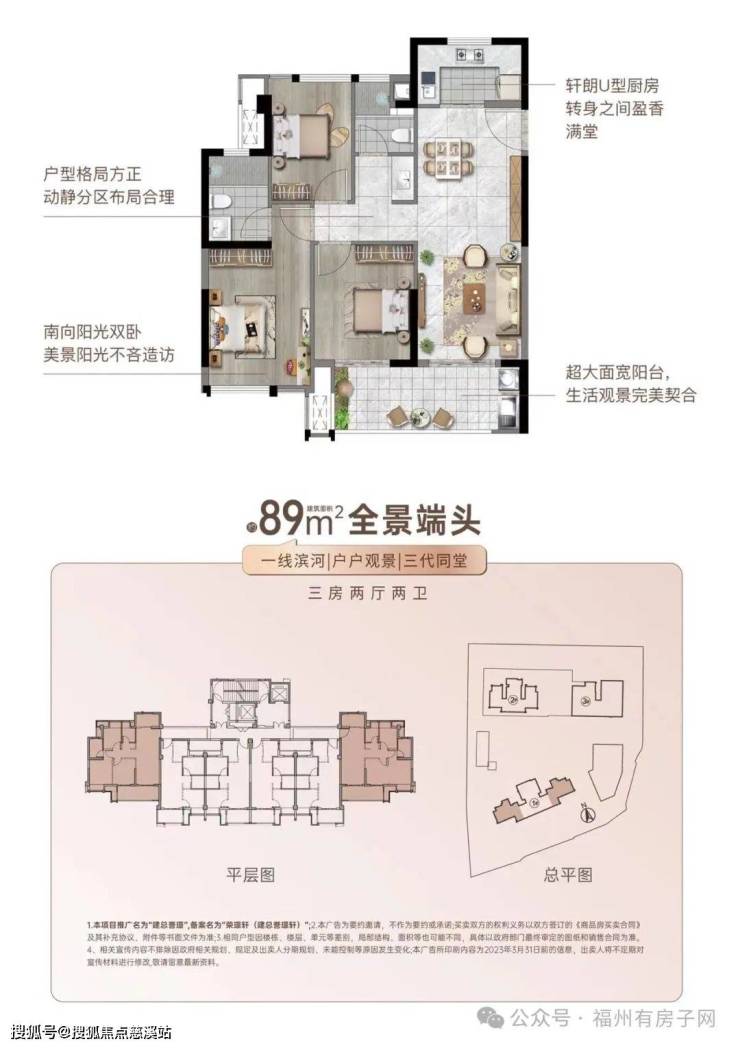 户型选择 建总誉璟提供了多样化的户型选择,以满足不同家庭的需求。其中包括57-89平方米的2-3房户型,这些户型设计合理,如两房两厅一卫、三房两厅一卫和三房两厅两卫等,既考虑了空间的实用性,又保证了居住的舒适性。