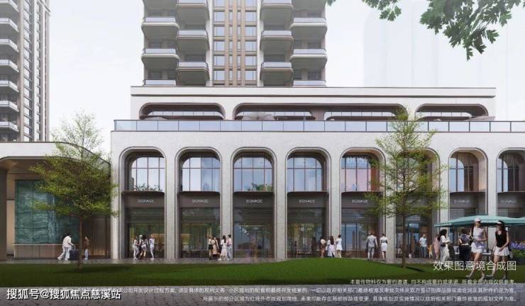 此外,项目“超配”设计,相较于主城区老旧的底商门面,项目商铺在外观上便让人眼前一亮,百年风貌立面,铺装葡萄牙米黄石材,结合首层全景落地门窗,打造具有昭示性的临街橱窗,极具时尚感与品质感的商业界面。