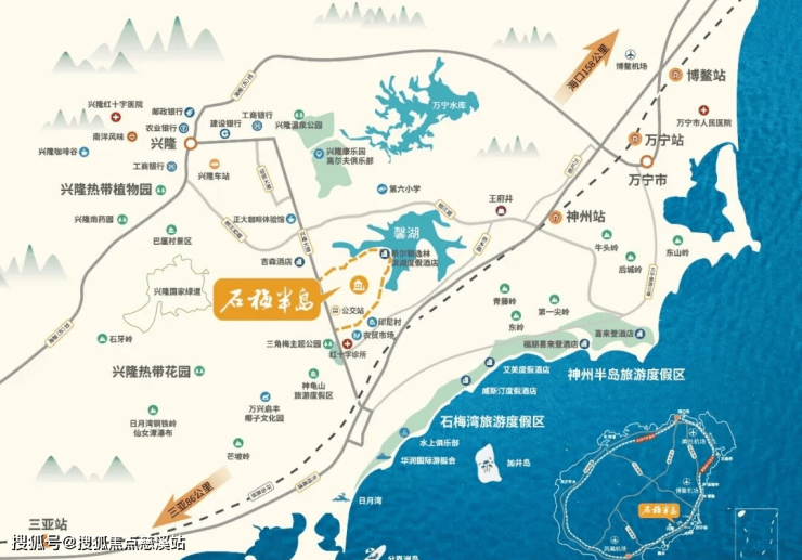 石梅半岛,坐落于兴隆旅游度假区馨湖畔,紧邻海南省级旅游度假区——石梅湾,以43万㎡低密湖岛大盘之姿,荟萃山林湖泉资源,集希尔顿酒店、度假洋房、亲湖别院、山林叠院、休闲配套于一体,为海南东部黄金海岸钜献诚意之作‼