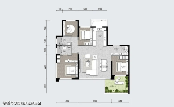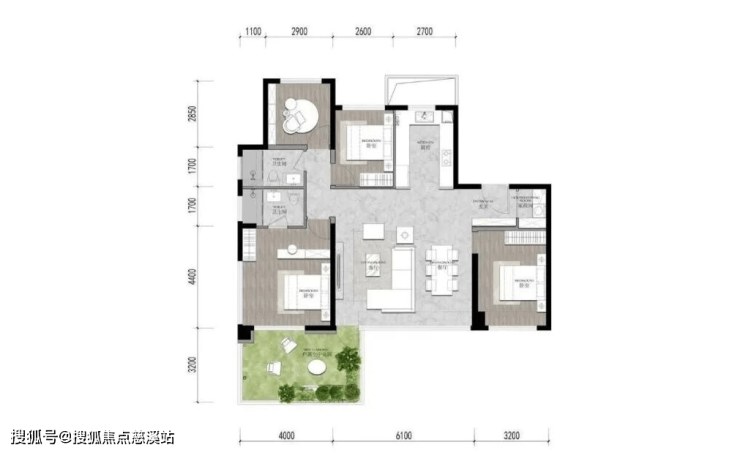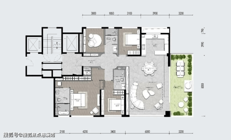 项目户户有露台,采用错层设计,将露台面积控制在一定范围内,没有一味的设计大露台,这样既能保证露台的利用率,还能最大程度的保证采光