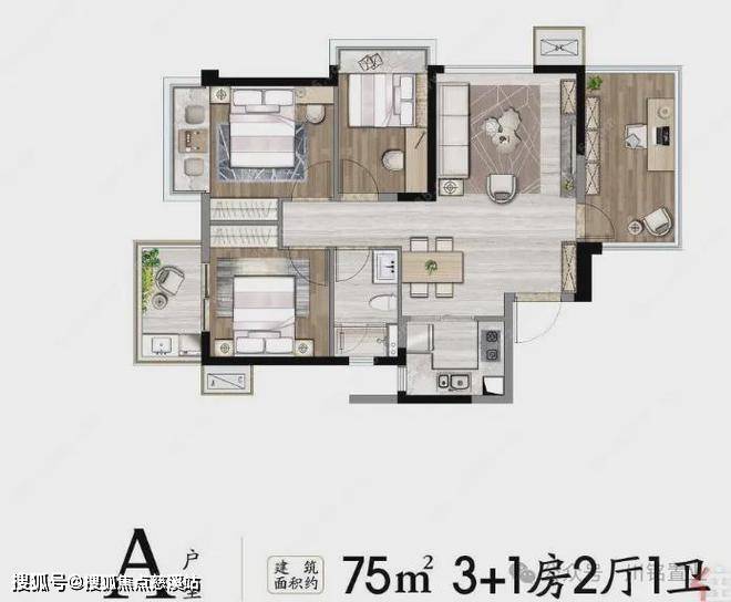 【户型面积】:建面约75-113㎡3+1房、4+1房;建面约143㎡联排别墅