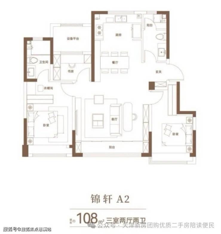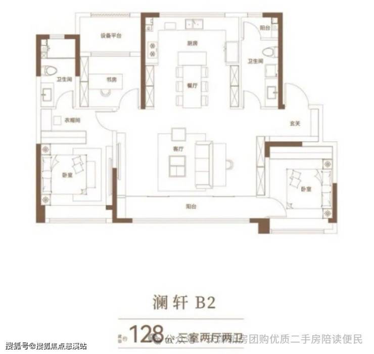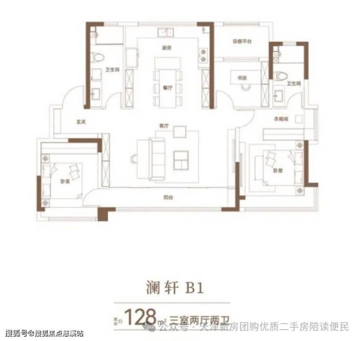 全产品三室双卫户型,经典大面宽、短进深布局,优化采光与通风