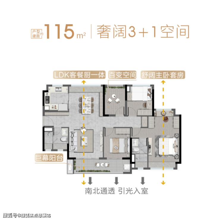 107㎡竖厅四房4开间朝南总价约200万起,115㎡南北对流4房整个盘只有4条梯腿,差不多总价240万起。
