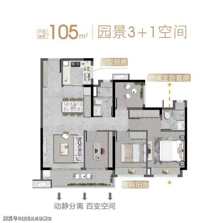 其中1-4栋26层高,5/6栋17层高,均为2梯5户设计,主推83/101/107/115㎡三四房产品。