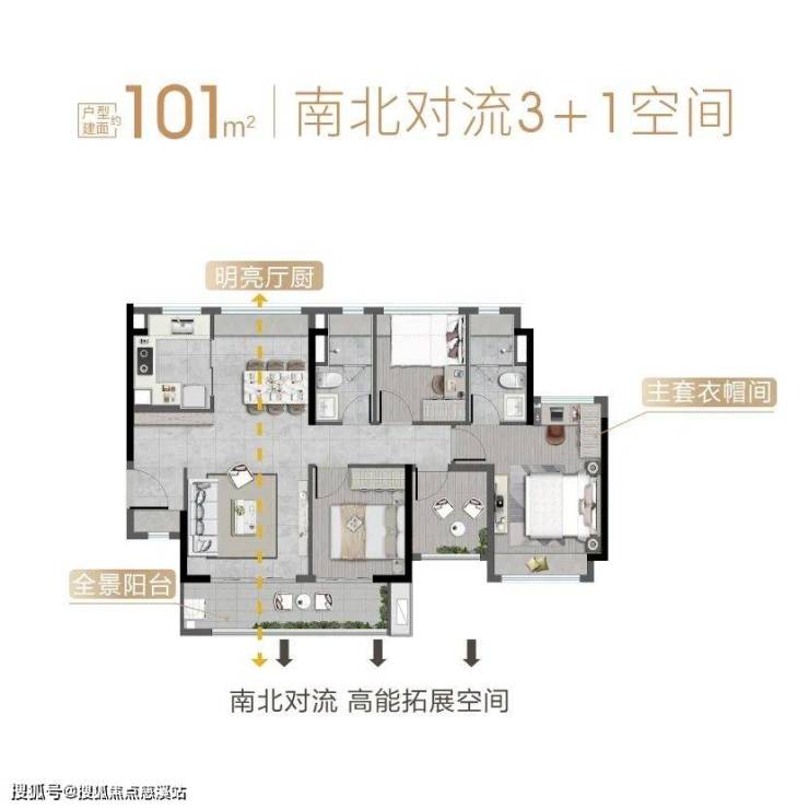 该户型为南北对流4房格局,是目前卖最好的户型。