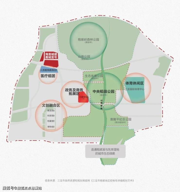 抱坡新城是三亚以“国际化、生态化、宜居化”为方向打造的新要地,定位为集自贸创新、城市服务、政务服务和生态宜居于一体的城市综合组团,规划范围约944.34公顷,是三亚“成片开发、功能复合”的重点板块。(信息来源:三亚市自然资源和规划局官网《三亚市抱坡地区控制性详细规划文件》)