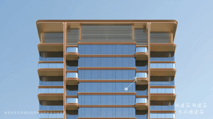 建筑立面独创“金镶玉”设计,用赤玉色陶板勾勒骨架,将西安的在地文化与国际审美完美结合。长安玉华在外立面间镶嵌的是难度更高的长安红色釉面陶板,这背后是绿城难以想象的匠心与坚守。