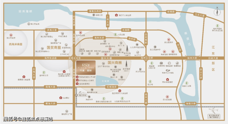 3大城市主干道:国兴大道、龙昆南路、海秀快速路交汇,约4公里可达国贸老城区、海口东站、汽车客运总站,5公里辐射海口核心商圈,经机场联络线约20公里到达美兰国际机场。