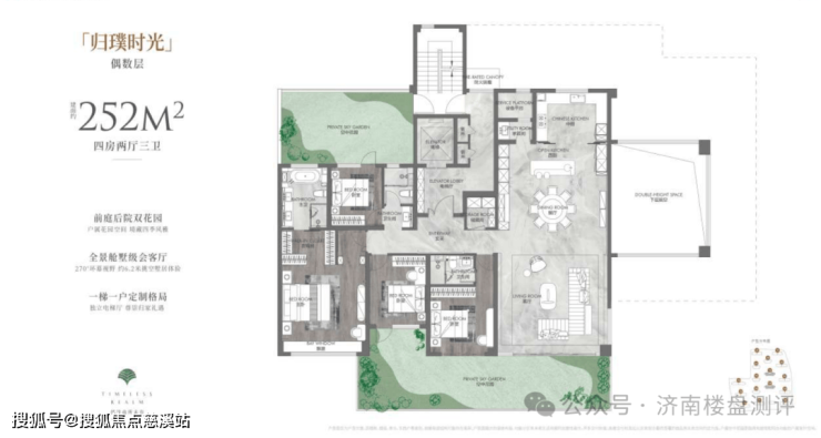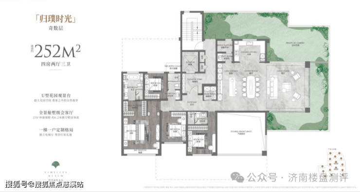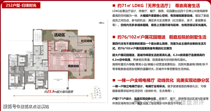 1、最大户型252平米,得房率约134%