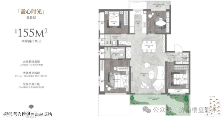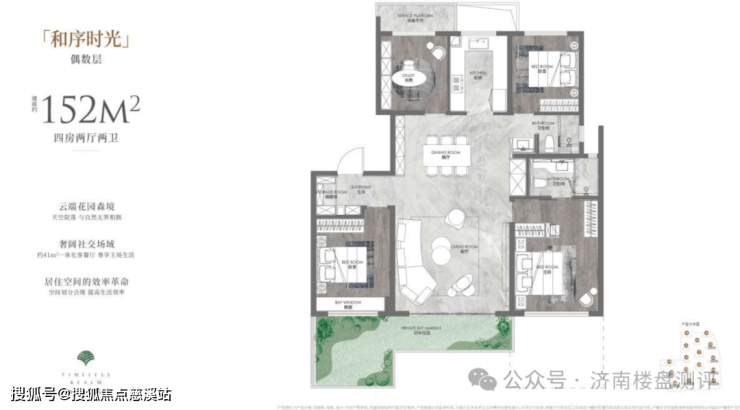 4、155/152平米户型,得房率100%