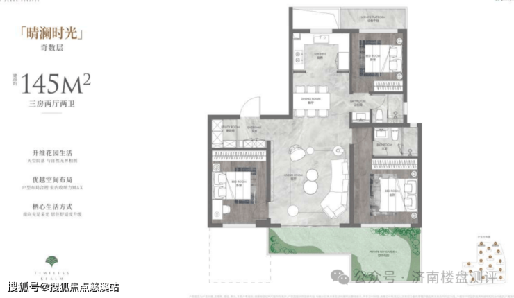 145平米户型位于北侧两栋24层的高层上,两梯两户设计。