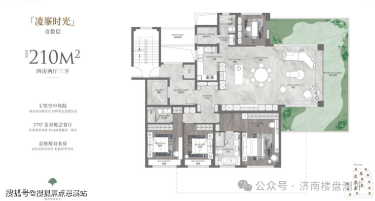 客厅挑空!270度空中花园!南北双花园!