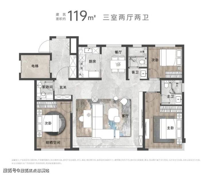 项目起步面积约119㎡户型,拥有约13.2米南向采光面+约6.5㎡超宽横厅+约3.2米层高,秒杀市面上同面积段产品。主卧套房设计,独立衣帽与卫浴系统,确保居住者的私密感与仪式感。更以住宅新规为杠杆,建筑面积约119㎡这一克制的面积实现140㎡的功能和尺度。
