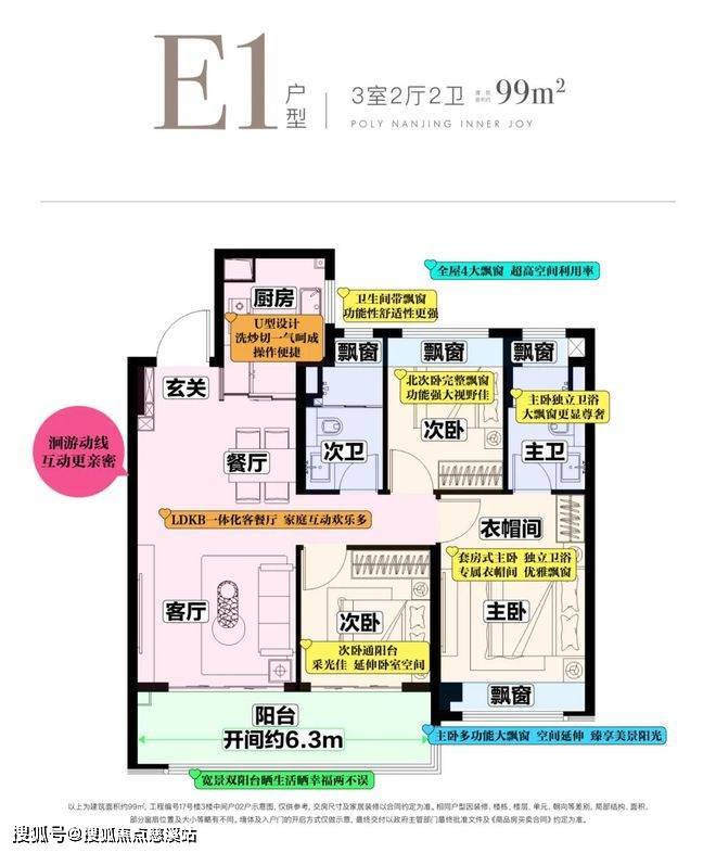 LDKB一体化设计,双联落地窗阳台开间达到约6.3米,与阳光撞个满怀;