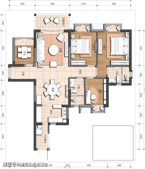 两梯四户的住宅化设计,1-4房舒适空间。户型从