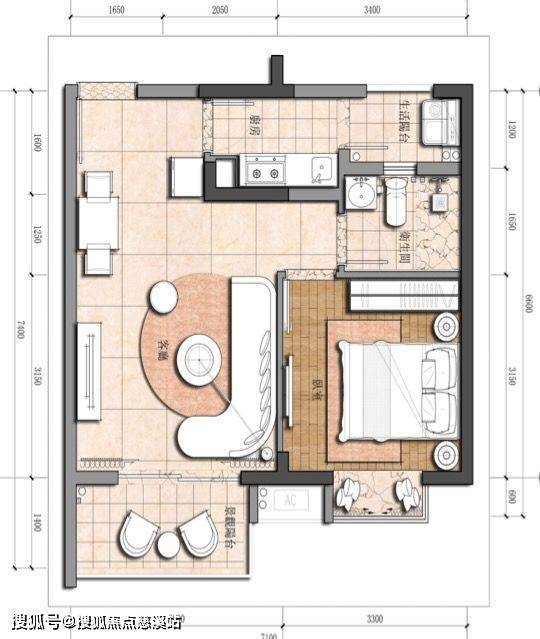 两房设计,主卧客厅朝南