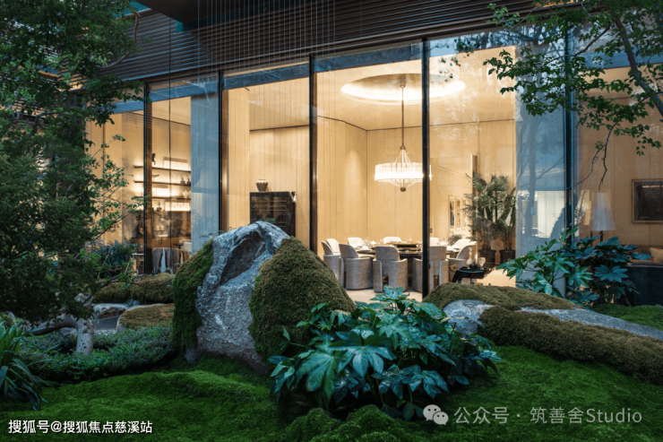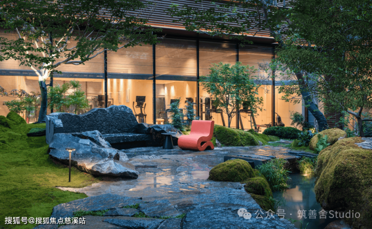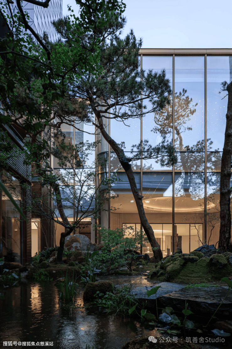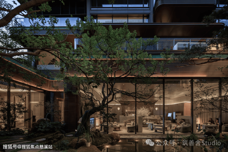 由外及内,从礼仪到日常,从都市风貌至迎宾雅致,匠心打造三重归家礼仪庭院。整体规划以围合式布局为核心,构筑“一心一环三庭五园七景十境”的空间序列。步入下沉式庭院,瀑布如丝如缕,连贯山水、台地、石景、森林与池塘,犹如一幅生动的立体水墨画卷,跃然于眼前。