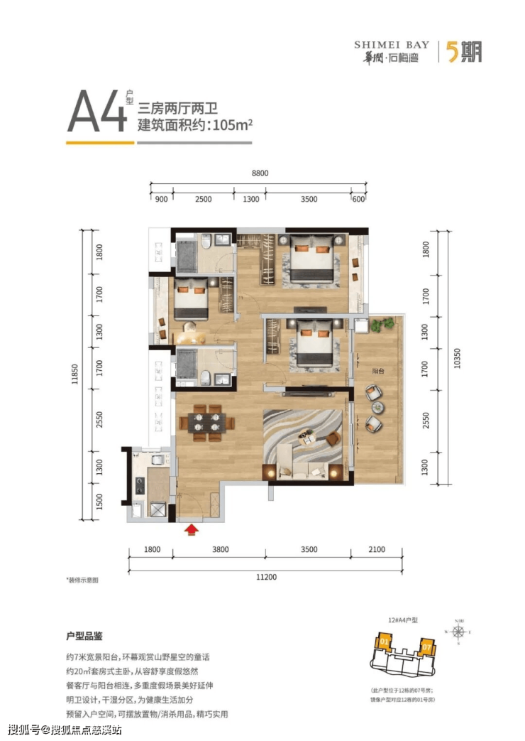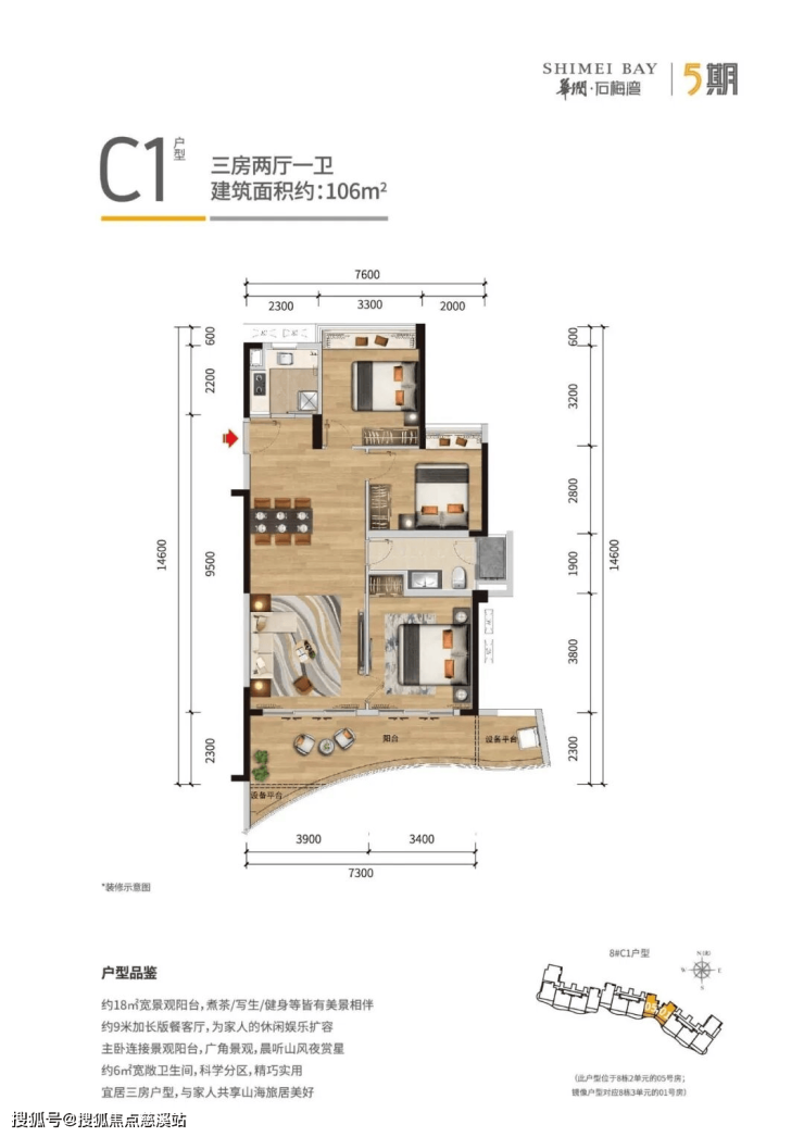 【主力户型】:建面约104—118㎡南北通透,10层以上楼隙看海