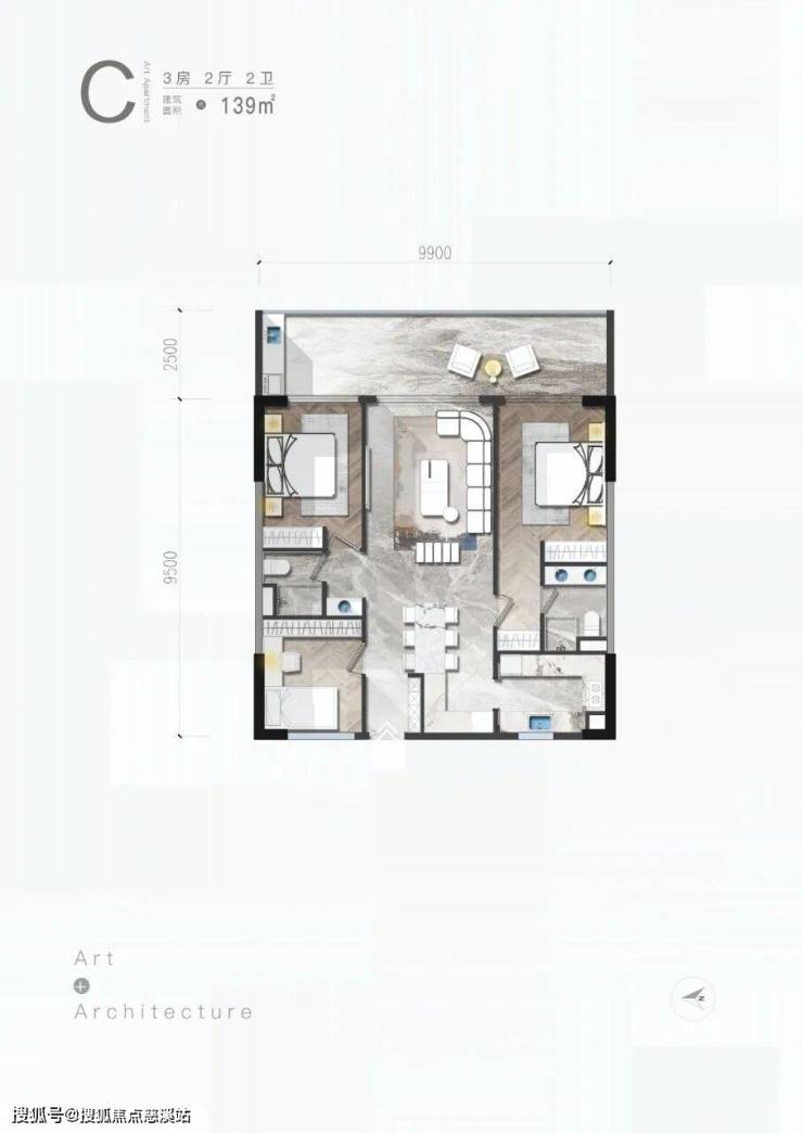 C户型/3房/2厅/2卫/139㎡