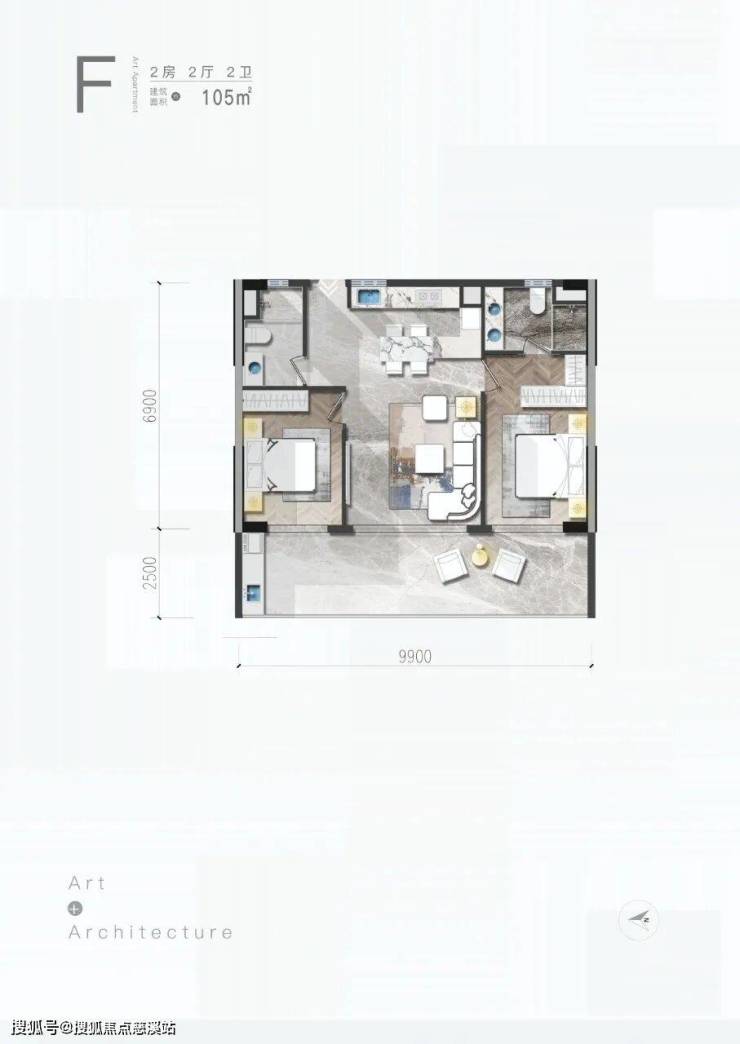 F户型/2房/2厅/2卫/105㎡