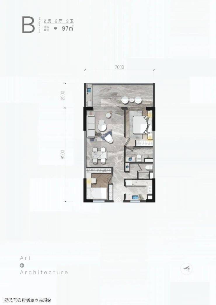B户型/2房/2厅/2卫/97㎡